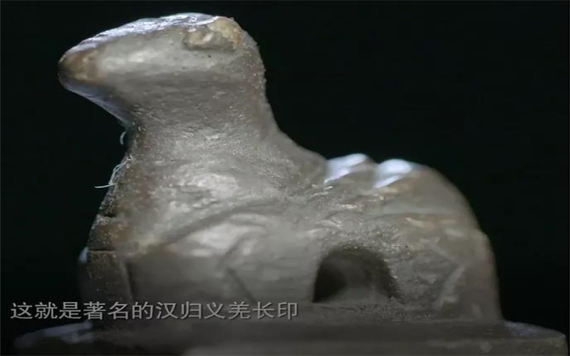 漢歸義羌長印,1953年發現于新疆新和縣玉奇喀特古城,年代為漢代,高3.5厘米,邊長2.3厘米,造型為卧羊紐,陰刻漢文「漢歸義羌長」。「歸義」表示羌人對中原王朝的歸心慕義,「羌長」二字說明中原王朝對羌人首領的承認、肯定和支持。此印印證了《漢書•西域傳》里官員「皆佩漢印綬」的記載,折射出漢王朝對西域各地的有效管理方式。據《漢書•西域傳》記載,西域羌人以畜牧和狩獵為生,生活在塔里木盆地各綠洲和蔥嶺以西河谷的部分羌人,與其他各族群雜居在一起,種植五穀、瓜果等。羌人喜歡音樂和舞蹈,衣、食、住、行與西域各遊牧民族基本相同。