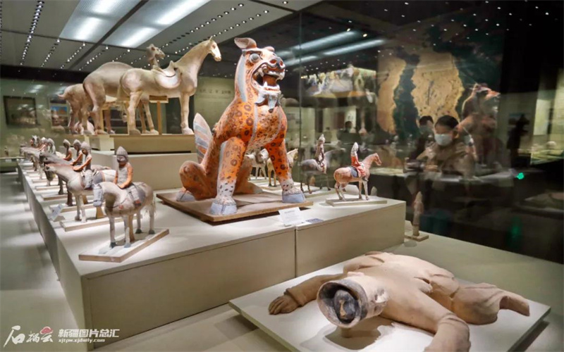 5月18日,遊客們走進新疆維吾爾自治區博物館新疆歷史文物展館觀看在這裏展出的各類、各歷史階段出土于新疆各地的文物。石榴雲/新疆日報記者秦鵬攝