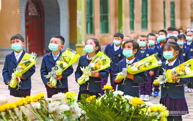 4月2日,小朋友向先烈敬獻鮮花。當日,庫車市各中小學校學生分批來到林基路烈士紀念館,緬懷先烈,弘揚愛國主義精神。袁歡歡攝