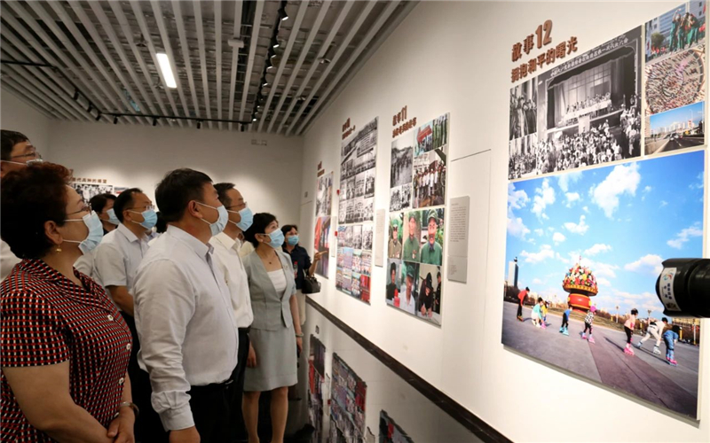 自治區黨委常委、宣傳部長、社科聯主席田文觀看了展覽。自治區黨委宣傳部常務副部長周旭勇出席開幕式並講話。「光榮在黨50年」紀念章獲得者宋士敬、房文傑,自治區黨委宣傳部常務副部長周旭勇,自治區社科聯黨組書記、副主席徐銳軍,新疆師範高等專科教育學校(新疆教育學院)黨委副書記、校長哈布都拉·黑沙比亞,新疆藝術學院黨委副書記、院長莫合德爾·亞森,新疆大學黨委副書記孟凡麗,新疆師範大學黨委常委、副校長孫秀玲,烏魯木齊市委常委、宣傳部長、社科聯主席隋榮共同為展覽啟幕。