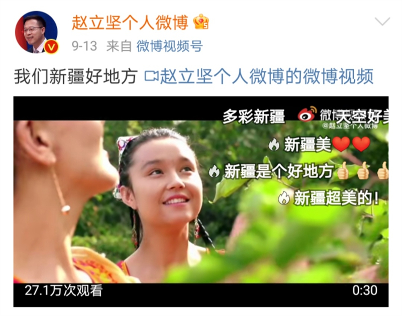 頻頻在微博上為大美新疆