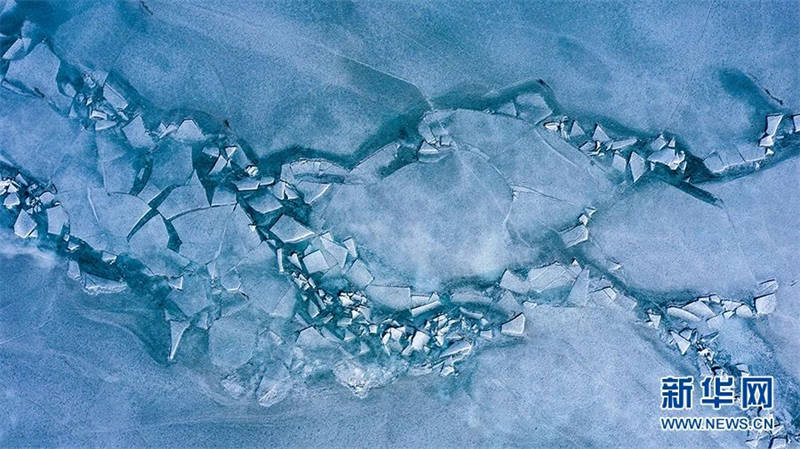 博斯騰湖湖面出現「推冰」奇觀。年磊 攝