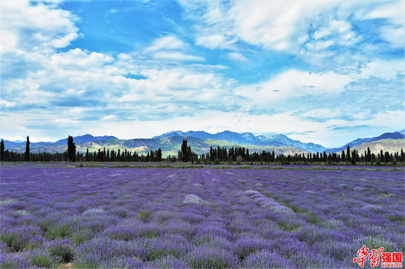 6月,伊犁哈薩克自治州霍城縣蘆草溝鎮,薰衣草逐漸進入盛花期。圖片來源「學習強國」新疆學習平台,作者:陳共青