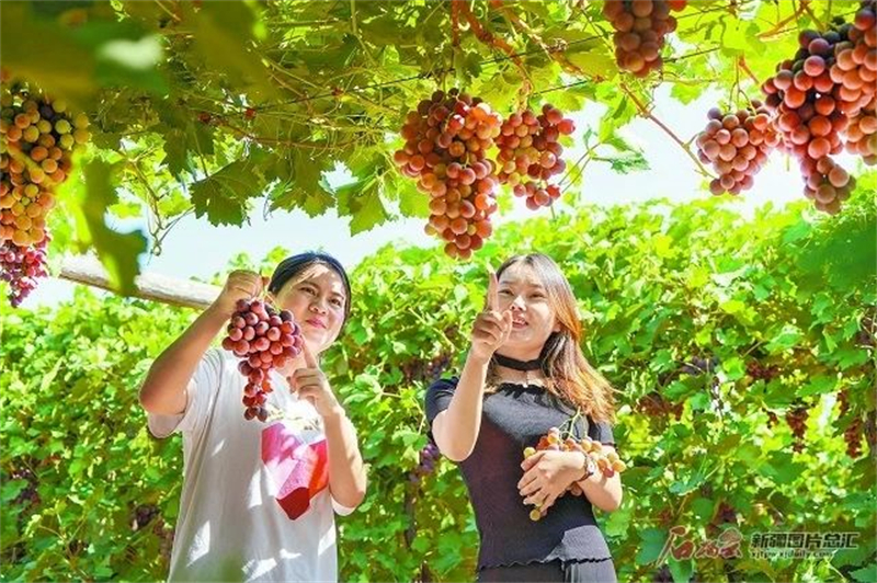 新疆生產建設兵團第十二師頭屯河農場二連果園裡的葡萄熟了(攝於9月3日)。韓栓柱 攝