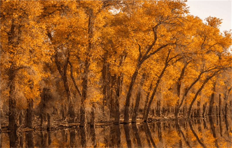 和田縣境內的原始胡楊層林盡染、風景如畫。阿迪力·那的爾 攝