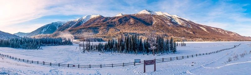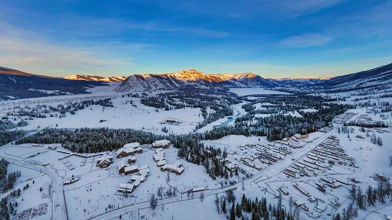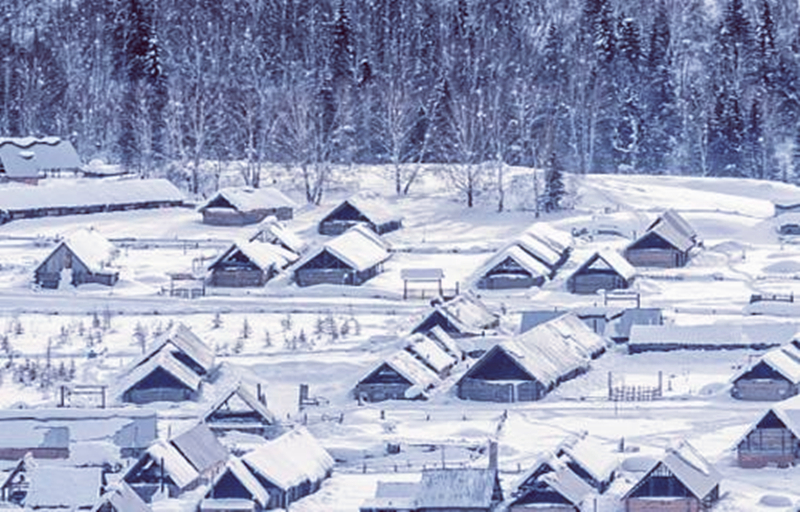 鳥瞰冬日清晨的喀納斯景區。邢千裏 攝