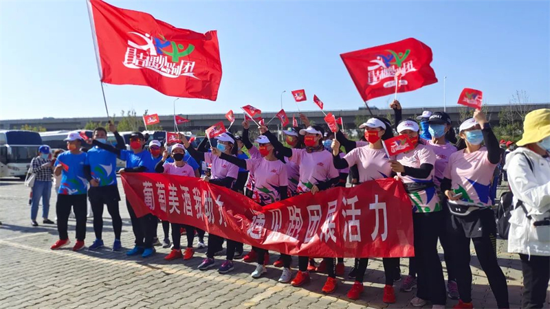 隨着自治區文旅廳副廳長張勇東宣布發車,現場地爆球齊放,所有車輛啟動統一由龍門架駛出,近800名遊客踏上了當天的葡萄酒莊品鑒體驗之旅,正式拉開了昌吉州」愛家鄉 遊新疆「秋冬季系列旅遊活動序幕。