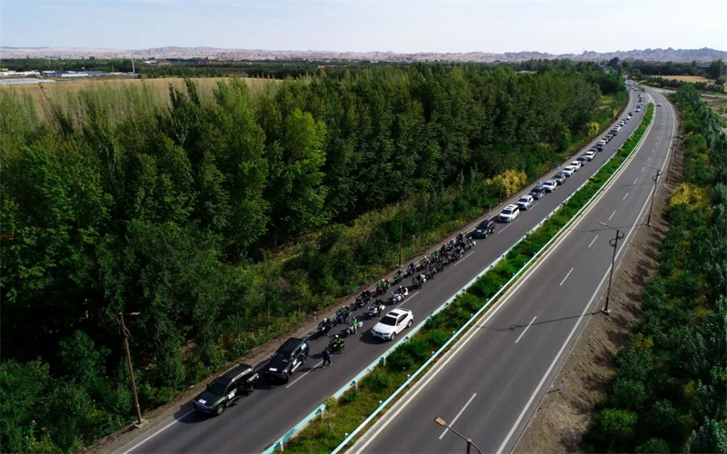 27日上午,由100名自駕車主,20輛摩讬車和20輛自駕車組成的車隊,在國際房車露營公園鳴笛出發,前往喀納斯主會場與主會場車隊一起向G219出發。