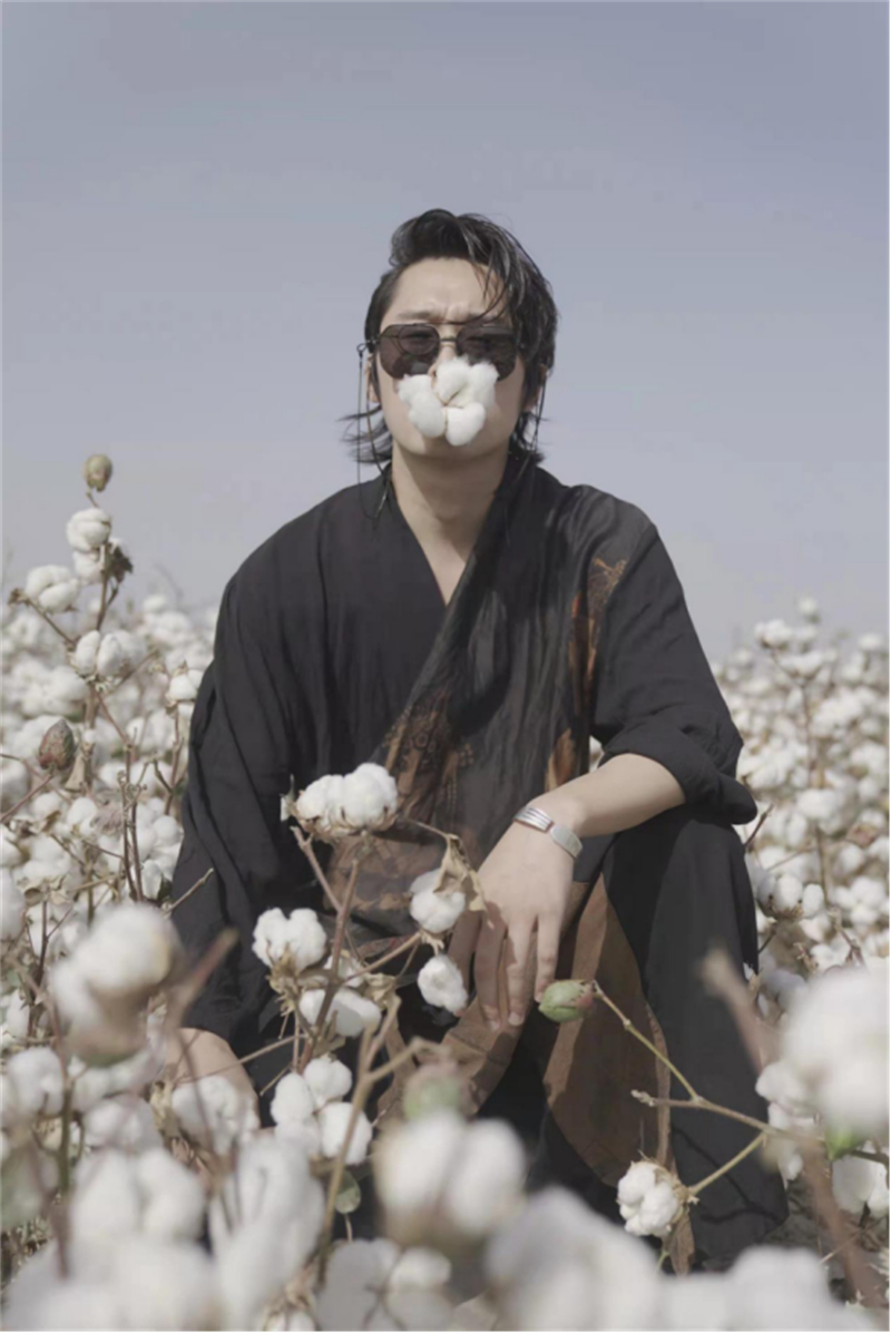 達人「夏一味」在棉花地裏。(「夏一味」供圖)