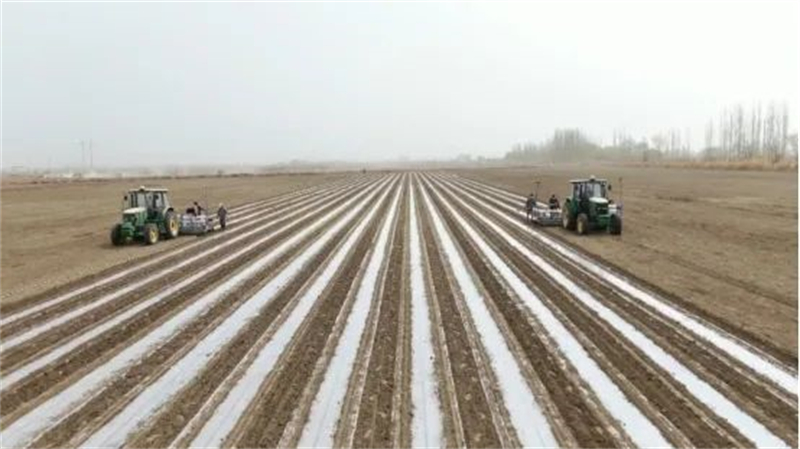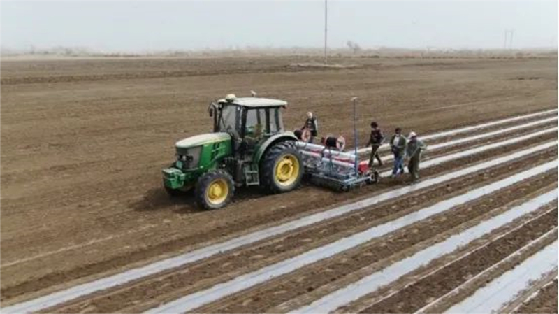 機械化棉花播種現場。(來源:沙雅縣零距離)