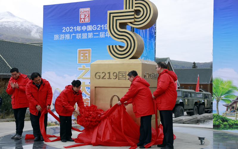 新疆、西藏、雲南、廣西、新疆生產建設兵團文旅部門負責人為G219零公裏紀念廣場雕塑揭幕。