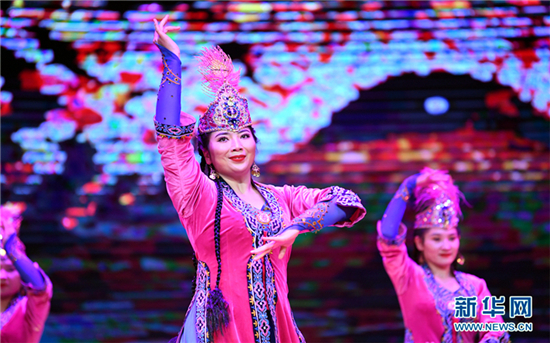 圖為第十三屆伊吾胡楊文化和旅遊節開幕儀式上的表演。新華社記者 沙達提攝
