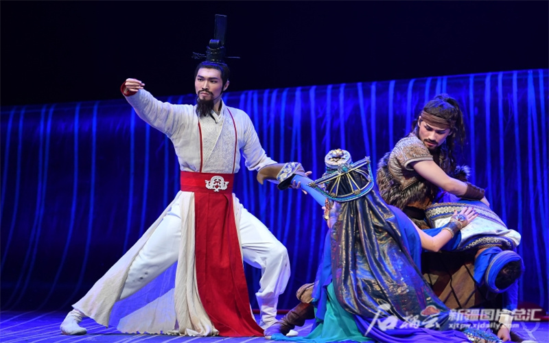 10月27日,大型原創舞劇《張騫》中,表現張騫用針灸治療西域某城邦王子疾病的場景。石榴雲新疆日報記者 鄒懿攝