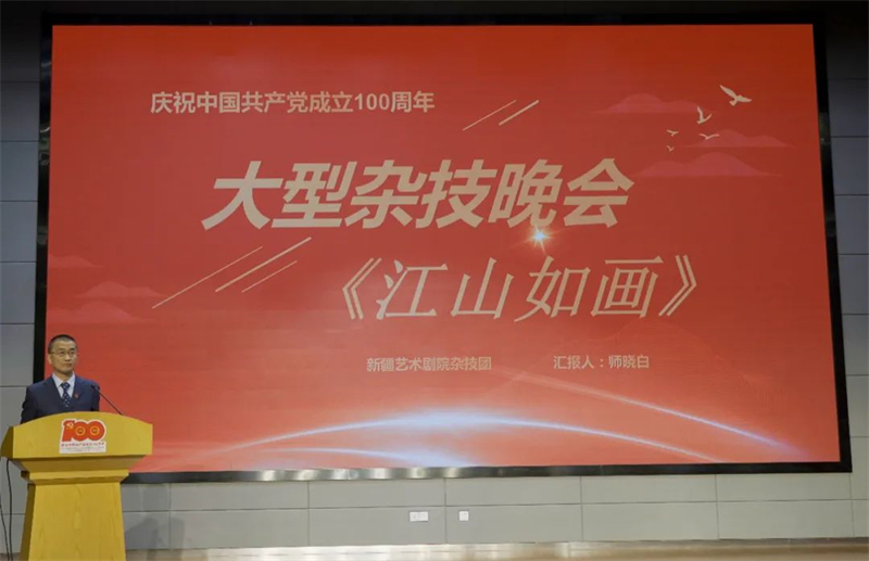 新疆藝術劇院雜技團展示分享了大型雜技晚會《江山如畫》。這是雜技團對雜技藝術的一次新嘗試,在創排過程中將雜技、舞蹈、歌曲相融合,全面回顧黨的光輝歷史,謳歌黨的豐功偉績,大力弘揚紅船精神、井岡山精神、長征精神、延安精神。這部作品已被列為自治區2021年度文藝扶持激勵資金重點創作劇目。