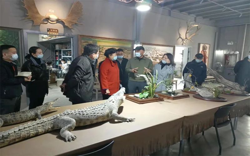 調研組一行來到新疆田馬博物館有限公司,調研了自然博物展覽基地的生態研究、生物技術開發、動植物標本製作和自然藝術品創作等工作,詳細了解不同類型科普館的策劃、設計、施工和布展流程。侯漢敏與標本製作師親切交談,詢問了工作情況,強調要繼續完善非國有博物館工作人員的職稱評審制度,創造條件留住這些人才。
