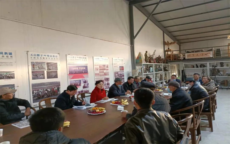 調研組一行來到新疆雕塑藝術園,參觀了自然山地雕塑公園,聽取新疆雕塑學會秘書長陳虎關於雕塑工作的專題彙報,並同雕塑藝術家進行座談交流。侯漢敏指出,這裏聚集眾多雕塑藝術家和獲獎作品,希望大家繼續致力於新疆雕塑藝術的發展,創作更多優秀作品在公園、廣場、特色街區、博物館中展示,服務「文化潤疆」工程。自治區政協文化文史和學習委員會主任盛春壽指出,自治區政協將大力支持,推動特色博物館建設在滿足人民日益增長的文化需求、實施「文化潤疆」工程、助力鄉村振興等方面發揮更大的作用。
