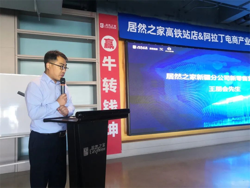 會議開始,居然之家新疆分公司新零售營銷總監王朋會介紹了居然之家烏魯木齊高鐵站店的發展現狀,並就家居建材行業與直播電商的融合發表了自己的看法。