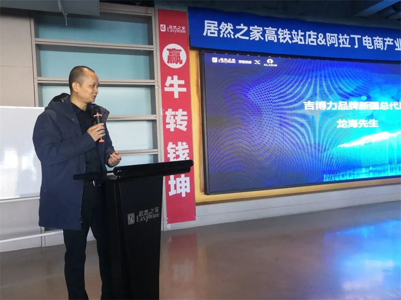 吉博力品牌新疆總代理龍海先生作為居然之家烏魯木齊高鐵站店的品牌代表,介紹了吉博力品牌在新疆的發展歷程和發展現狀,重點講述了在直播電商發展中線下門店受到的衝擊和影響。