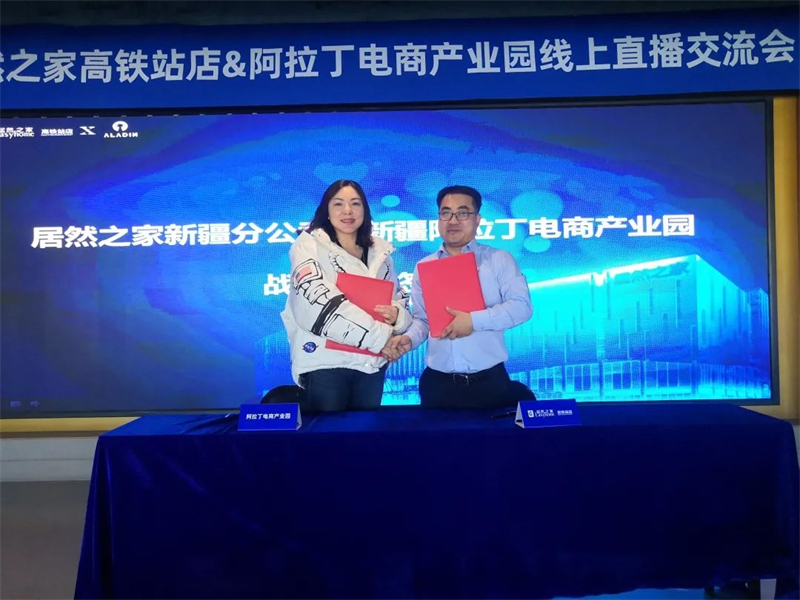 最後,居然之家新疆分公司新零售營銷總監王朋會與新疆阿拉丁電商產業園總經理,簽訂了戰略合作協議。