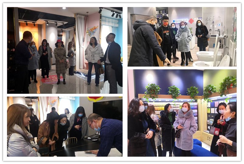 交流會結束後,居然之家高鐵站店新零售營銷部市場企劃負責人張茂偉帶領阿拉丁電商產業園的電商企業及主播們進行了巡店活動,參觀人員進一步了解了家居建材行業的產品特性。