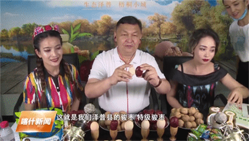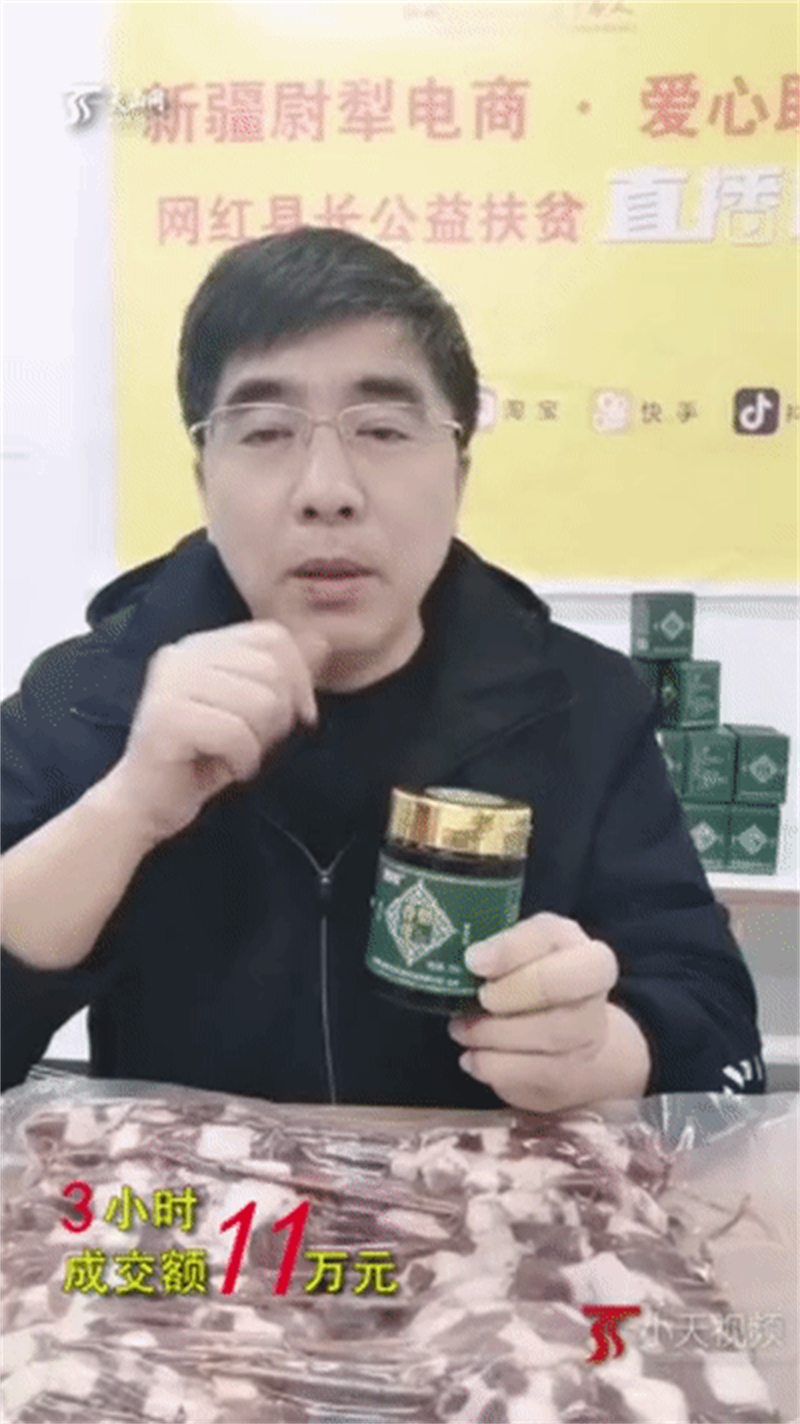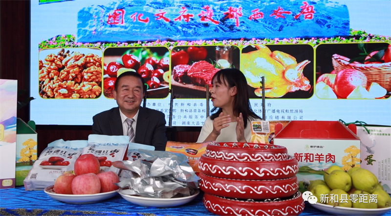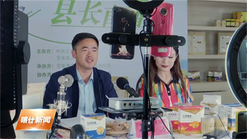 時任新和縣委副書記、縣長在直播間為當地農產品帶貨(資料圖片)。來源新和縣零距離