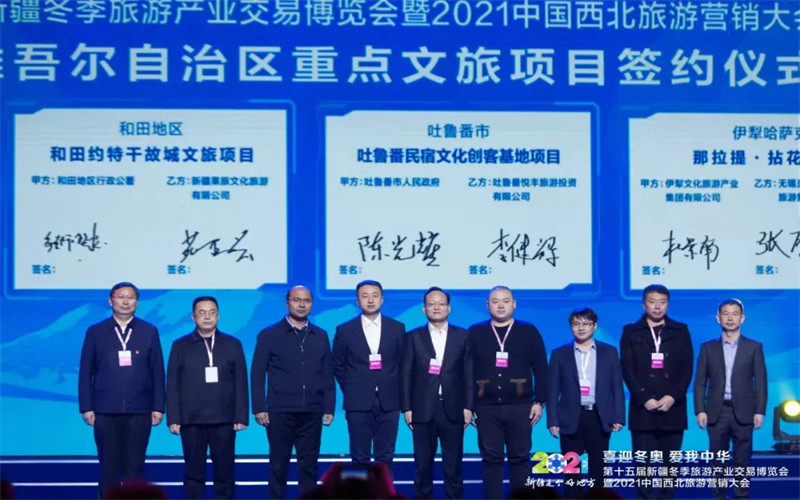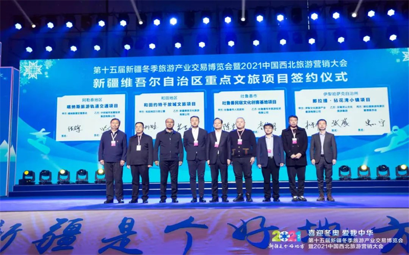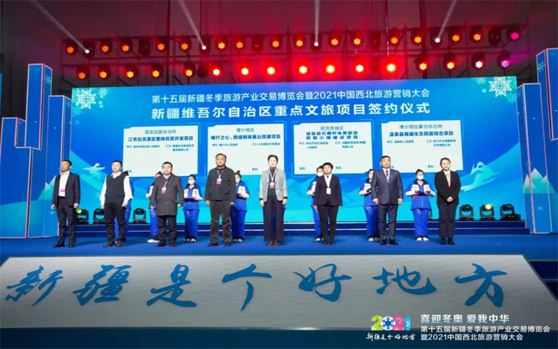 11月27日,第十五屆新疆冬季旅遊產業交易博覽會暨2021中國西北旅遊營銷大會舉行重點文旅項目簽約儀式。喀納斯旅遊軌道交通項目等8個項目現場簽約,還有29個項目將在冬博會期間簽約。內容涉及交通、民宿、度假區、房車營地建設、鄉村振興旅遊綜合開發、旅遊度假小鎮建設等,簽約總金額694.25億元。