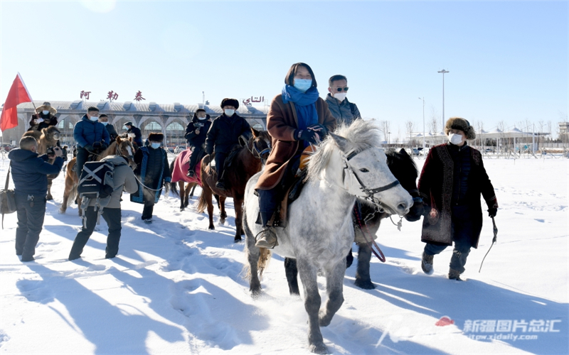 11月30日,遊客在阿勒泰市騎馬觀光。石榴雲新疆日報記者 韓亮攝