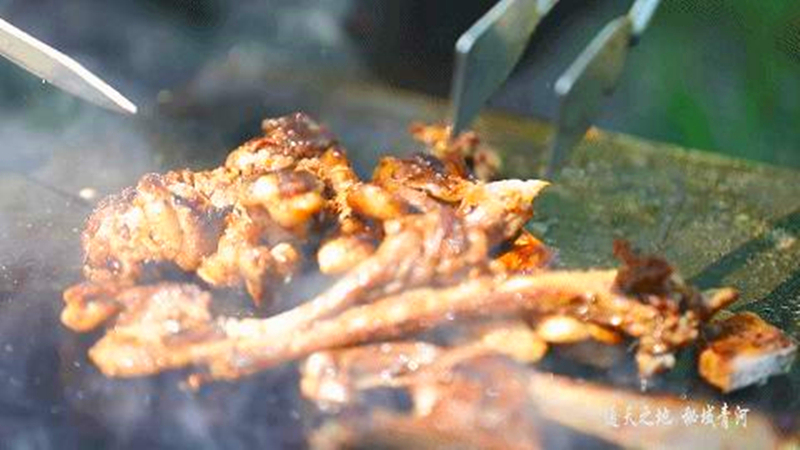 你可以看到,昌吉三工鎮架子肉被烤得外焦裏嫩