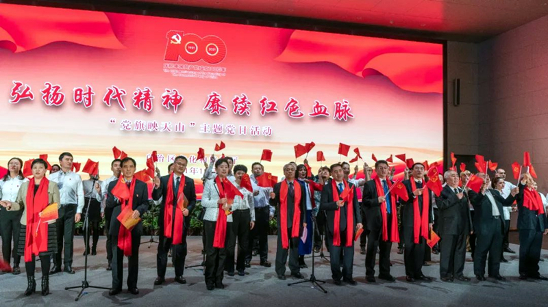 此外,自治區文化和旅遊廳組織全系統200多名老中青三代黨員齊聚一堂,開展了「黨旗映天山」主題黨日活動,以「政治生日」、話初心、新黨員入黨宣誓、詩歌朗誦等豐富多彩的形式,引導廣大黨員幹部深刻感悟紅色初心,汲取奮進力量,在努力奔向第二個百年宏偉目標的新征程上,展現新疆文旅人的新擔當、新氣象、新作為。