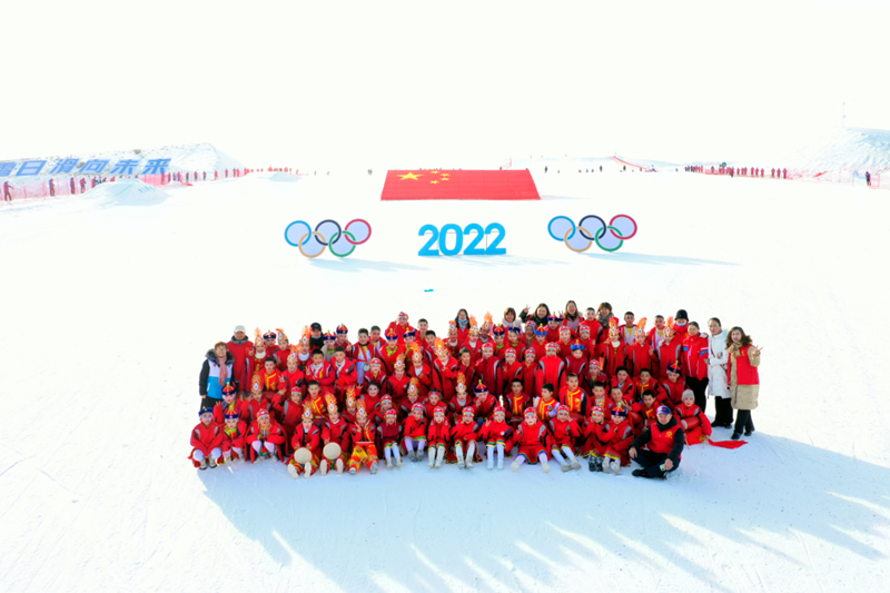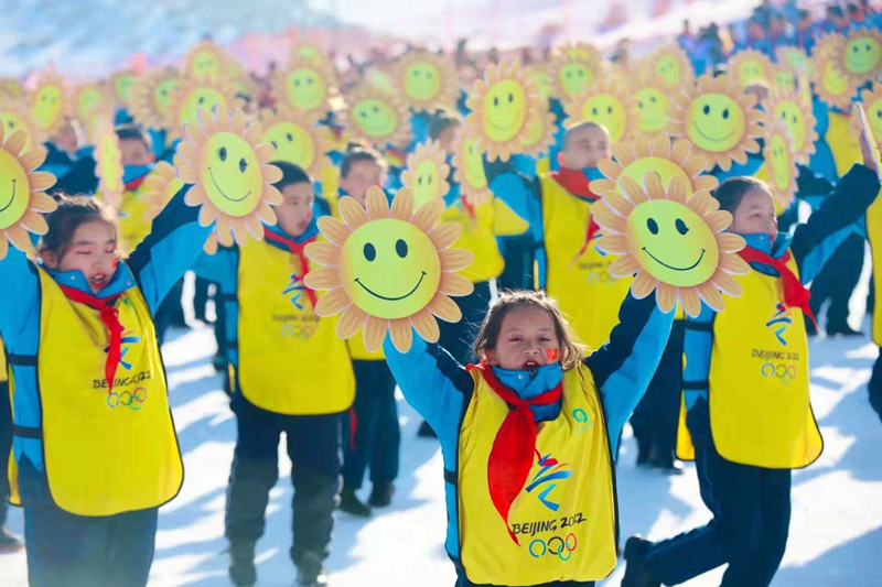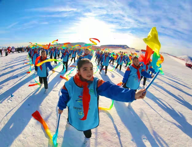 此外,120名少年兒童和滑雪指導員從雪道頂端腳踏雙板滑翔而下,圍繞國旗和奧運五環標識變換隊形,最終在雪道底部匯合,將開幕式推向了高潮。隨後,兒童雪上藝術操表演、綵帶操、雪上民族舞蹈等節目輪番上陣,舞台上下活力四射;娛雪區數百名學生開雪地坦克、騎雪地摩讬、滑雪圈、坐冰上碰碰車……玩得不亦樂乎;雪具大廳內,孩子們還能參觀了解北京冬奧會項目和中國冰雪發展歷程。