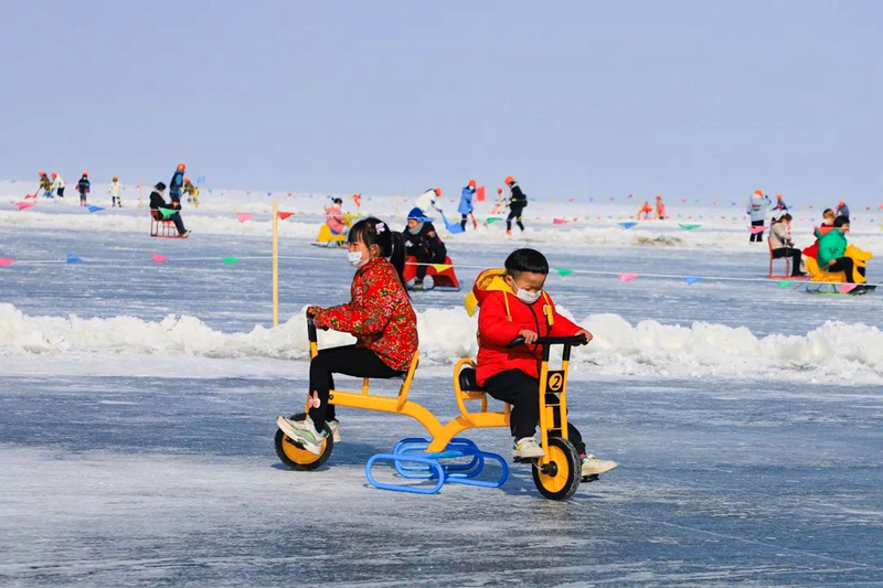 2月1日,博斯騰湖大河口景區內,遊客盡享冰雪樂趣。圖片來源:博湖零距離