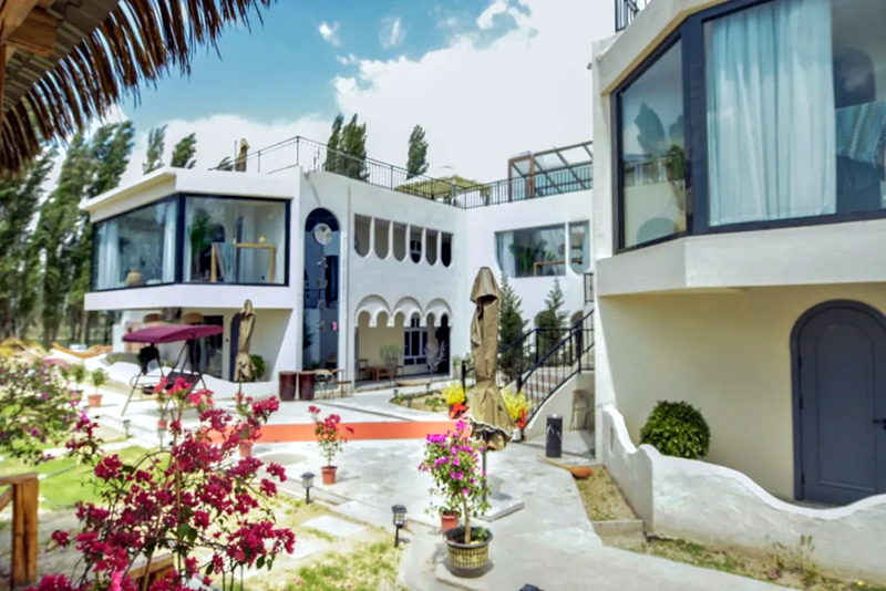 四是發展旅遊產業。從「以花名村」到「依花富村」,大力發展旅遊、民宿、餐飲、特色薰衣草產品、開辦旅遊附屬產業,以此提升村經濟發展再上新台階,助力村民多渠道增加收入。2019年完成首批村民資產評估、入股等工作,規劃建設中的村民戶戶均為公司的股東;成立鄉村旅遊發展股份公司;配合運營公司做好村民對接工作。在民俗建設前期,讓有一技之長的村民成為參與者和建設者,讓會木工、電焊工、瓦工的參與建設,在家門口掙打工就業。對於出村去打工的村民和子女,按戶發放簡歷表格,按民俗旅遊所需的崗位,比如服務員、收銀員、導購等,動員他們回村工作,共同建設美麗的家園。目前有民宿點38家,投入運營的18家,酒吧1個,咖啡廳1個,薰衣草銷售點12家、農(牧)家樂14家。2020年,通過「村集體+旅遊」新模式,爭取自治區壯大村集體經濟項目、伊犁州「火種計劃」等項目資金150萬元,縣委配套50萬元,各村集資150萬元,合力建成民宿點晃晃莊園,每年為村集體增收70餘萬元。