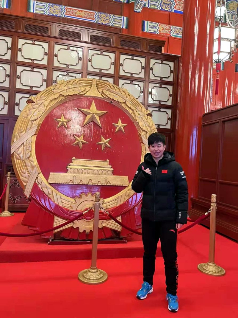 田芮寧在冬奧會前和隊友們一起參觀天安門。 李麗萍供
