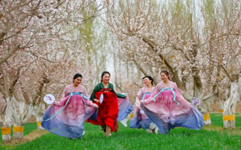 三是實施文化潤疆聚人心、促進文旅融合提質增效。卡西比西村少數民族佔比較大,地域民俗文化豐富多元,天然地緣優勢明顯。該村瞄準土地流轉形成的集中運營的杏園、梨園,主動梳理杏文化、民俗文化,打造文化品牌。2019年至今投資20餘萬元建設基層文化陣地,購置音響設備、組建舞蹈隊、配備服裝道具等,策劃打造杏文化演藝舞台和文藝節目,與旅遊項目嫁接融合,形成市場規模帶動效應。杏文化在杏食用油、杏化妝品、杏乾果等一、二、三產得到充分體現。2019年與該村簽約杏果訂單的輪台大德恆生物股份有限公司生產的甜杏仁精華素入選新疆禮物名錄,「杏花村旅遊示範一條街」項目實施,明確了鄉村街區文化定位和商戶建築風格,成為鄉村文化體驗、文旅項目參與、產業融合實證的入口和品牌。2021年春季開啟為期3個月的杏文化鄉村文化旅遊季,日均接待遊客300餘人,實現旅遊收入135萬元。