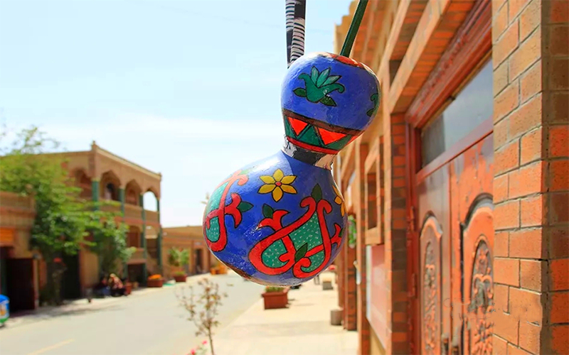 二是注重民族特色古街打造,大力發展鄉村休閑旅遊。利用阿勒屯村文化底蘊濃厚、文物古跡較多,是國家級「歷史文化名村」的優勢,依託葫蘆、刺繡、農民畫、木卡姆「四張名片」着力在阿勒屯古街建成了「木卡姆研學館」及「葫蘆農民畫研學館」展廳等,積極引導和鼓勵當地農民參與民族樂器製作、葫蘆烙畫藝術創作,傳承和發揚優秀傳統文化。目前,古街已初步形成商業聚集區、農業觀光區、民宿休憩區、餐飲美食區四個區域,集吃、住、遊、樂為一體的民俗特色風情街,吸引廣大遊客前來觀光遊玩。古街每年接待遊客4萬餘人,直接帶動本地300餘人就業,運行3年來共接待遊客13萬人次,實現旅遊收入140萬余元,有力推動了鄉村休閑旅遊發展,拓展了農民增收渠道。