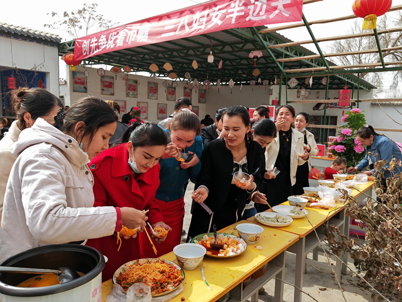 2022年「三·八」國際婦女節來臨之際,新疆文化和旅遊廳駐帕萬拉村「訪惠聚」工作隊、村「兩委」組織開展「創先爭優看巾幗 婦女能頂半邊天」主題聯誼活動,與轄區婦女代表共同歡度節日。