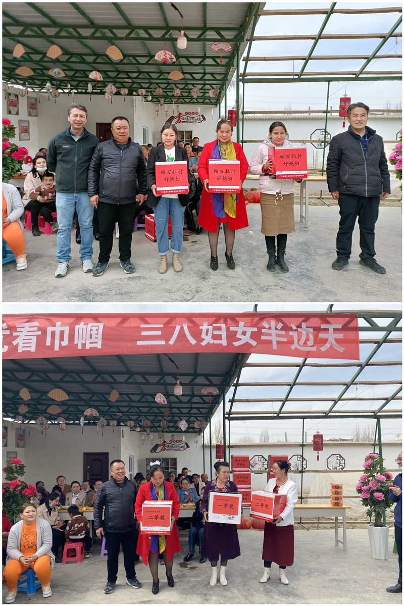 新疆文化和旅遊廳駐帕萬拉村「訪惠聚」工作隊第一書記周文亮參加聯誼活動並向全村婦女同胞致以節日的問候和美好的祝願,為獲得榮譽的婦女頒發獎牌、證書和慰問品。