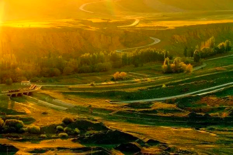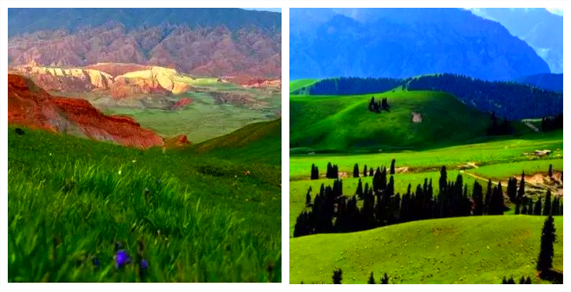 在昆崙山懷抱裏形成的天然巨型「氧吧」中,走進草場,如入一個清涼世界,夏日的乾燥與悶熱不復存在。讓你真正體驗「早穿皮襖午穿紗,圍着火爐吃西瓜」。