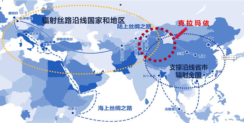 克拉瑪依具有推動產業大發展的優越區位。她擁有的7733平方公裏熱土,正好位於新疆西北部的中心地帶,位於中亞油氣富集區的中心區域,位於亞歐大陸的腹心地帶,位於「絲綢之路經濟帶」中西對接和中巴經濟走廊南北相連的交匯節點,毗鄰5個通商口岸,具有輻射中亞南亞、連接東西南北的巨大優勢。現在,克拉瑪依已與「一帶一路」沿線國家的十幾座城市建立了友好聯繫,涉外企業已在中亞、西亞設立了21個辦事機構。克拉瑪依已構建起高速公路、動車、25條航線構成的立體交通網,正在把這種區位優勢變成產業輻射的現實。