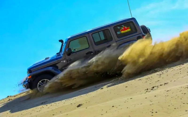 5月1日,「樂享假日·嗨在精河」精河縣第五屆木特塔爾沙漠文化旅遊節暨木特塔爾沙漠越野挑戰賽開賽,上演速度與激情。圖片來源:精河縣融媒體中心