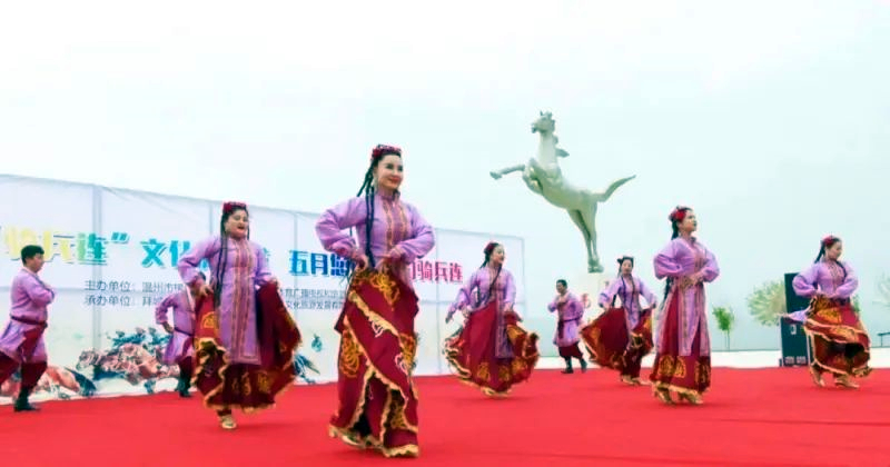 5月1日,「五月您好 拜城縣『騎兵連』文化旅遊節」在拜城縣老虎台鄉騎兵連廣場開幕。圖片來源:拜城縣融媒體中心
