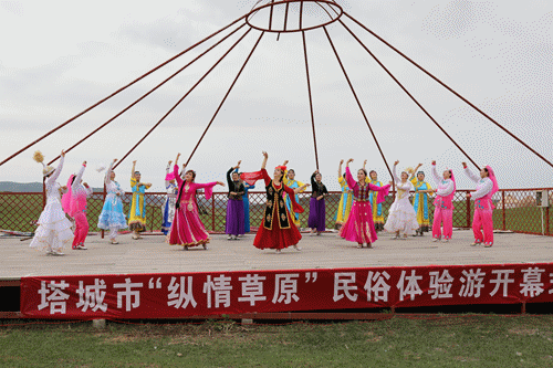 5月4日,塔城市「縱情草原」民俗體驗遊開幕式。圖片來源:油畫中的塔城