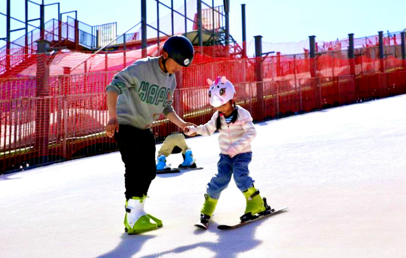 4月30日,孩子們在阿勒泰市將軍山滑雪場學習滑旱雪。圖片來源:阿勒泰市融媒體中心