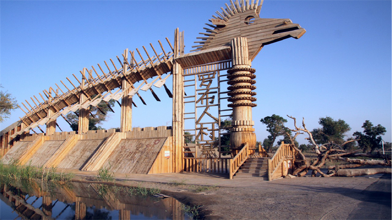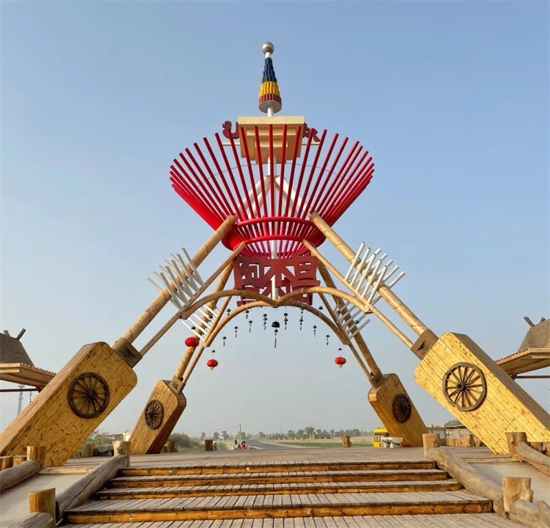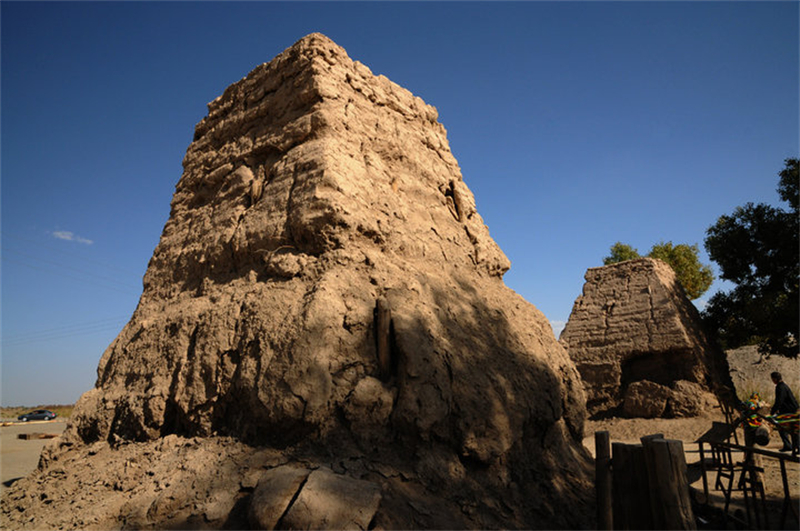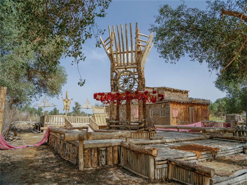 註目一看,這分明就是一位羅布老人。這位羅布老人的原型是「羅布人形象代表」肉孜·沙迪克。2004年9月28日,肉孜·沙迪克去了北京,登上了天安門。2005年沙迪克老人去世,終年104歲。這是羅布人村寨的一處標誌物,同時具有長壽的意義。