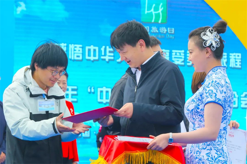 與會領導分別為「自治區級夜間文化和旅遊消費集聚區」「自治區旅遊休閑街區」「自治區級滑雪旅遊度假地」「國家級甲級旅遊民宿、乙級旅遊民宿」代表授牌,為「百縣萬部微視頻」大賽和「法隨我行 文明暢遊」旅遊普法短視頻獲獎作品的主創人員10人頒獎,為第十二季「達人西遊」網絡推廣和「愛新疆·遊家鄉」萬車自駕遊天山活動車輛代表授旗。
