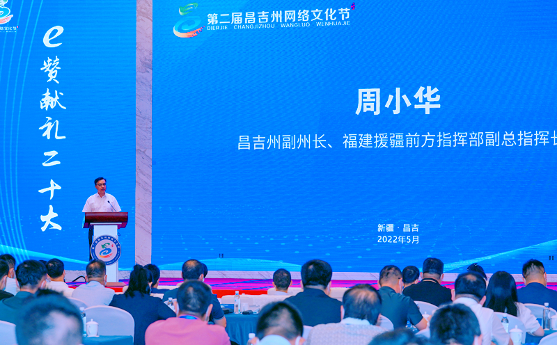 5月25日,2022第二屆昌吉州網絡文化節隆重開幕。活動由新疆維吾爾自治區黨委網信辦、福建援疆前方指揮部、昌吉州黨委宣傳部指導,昌吉州黨委網信辦主辦,昌吉州總工會、州直相關單位、福建援疆各地市分指揮部、各縣(市)委網信辦共同協辦。