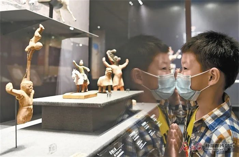 6月4日,一位小朋友在新疆博物館二期新館參觀。圖片來源:石榴雲新疆日報 記者湯永攝
