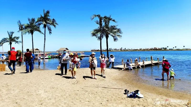 6日3日,許多遊客來到阿克蘇地區皇宮湖沙漠湖泊旅遊度假景區觀光。圖片來源:石榴雲新疆日報 記者 楊斌 攝