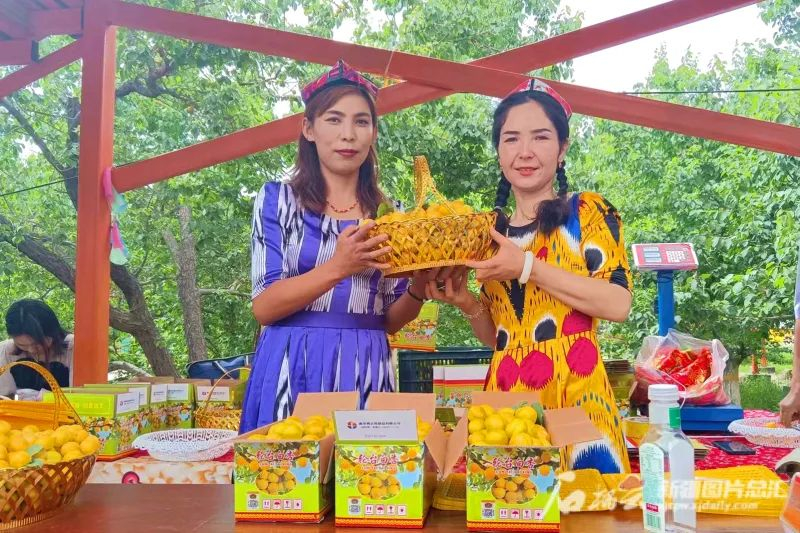 6月3日,巴音郭楞蒙古自治州輪台縣「有『杏』相約,幸福輪台」第三屆白杏文化節現場,杏農展示輪台白杏。圖片來源:石榴雲新疆日報 姜微蓮 攝