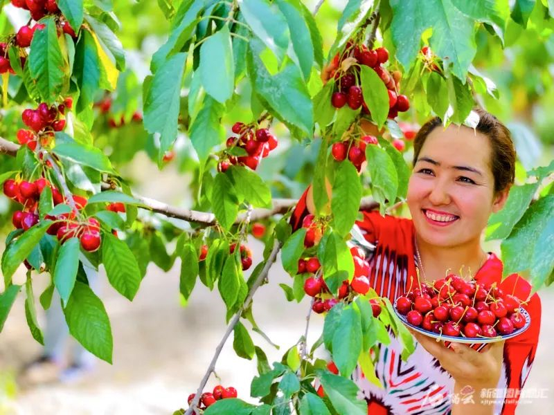 6月3日,走進洛浦縣納瓦鄉諾布依村櫻桃採摘園內,一串串紅彤彤的「黑珍珠」櫻桃掛滿枝頭,遊客們提着果籃穿梭於櫻桃樹間,在這裏盡情地享受收穫累累碩果的喜悅,品嘗新鮮櫻桃,觀賞田園風光。買買提艾力·艾尼瓦爾攝